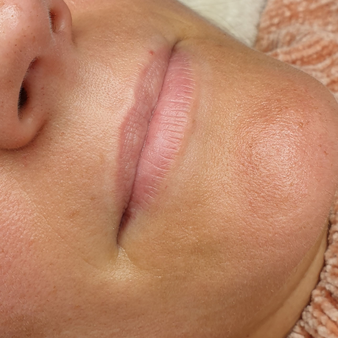 Técnica de micropigmentación de labios natural. Recomendado para personas con labios demasiado finos, asimétricos, despigmentados, con un contorno borroso o con cicatrices.
